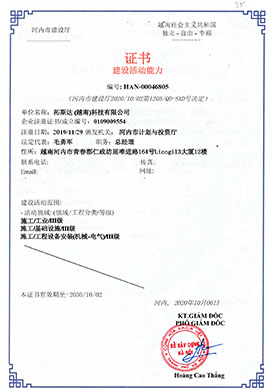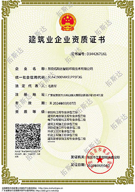 现有资质:修建机电装置工程专业承包一级,以及钢结构工程专业、电子与智能化工程专业、修建工程、环保工程专业、机电工程、修建装修装饰工程、消防设施工程等专业资质。现有团队300余人,含销售,设计,资深设计,项目运营团队200余人(中高级工程师,一级/二级制作师),采购团队,后台支持管理职员,恒久协作专业施工团队1000余人。